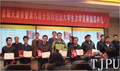 2013 1229日,首届天津市暨第九届全国周培源大学生力学竞赛颁奖典礼在天津大学举行。我校机械工程学院机自专业的5名同学(张韦,张晨,余昕,李坤,宋灿)代表学校参赛,获得了全国优秀奖4项,天津市二等奖3项、三等奖1项、优秀奖1项。
