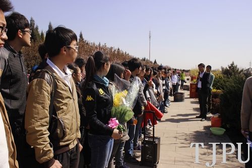 43上午,校学工部组织义缘助学服务中心、真维斯爱心社100名同学,由学生资助服务中心金学东老师带队前往天津憩园为白方礼老人扫墓以及前往天津烈士陵园缅怀革命先烈。