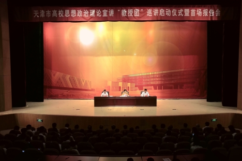 为深入贯彻全国和天津市高校思想政治工作会议精神,2017年5月31日下午,天津市高校思想政治理论宣讲“教授团”巡讲启动仪式暨首场报告会在互博电子体育艺缘礼堂举行。天津市委常委、市委教育工委书记程丽华,市委教育工委常务副书记杨庆山,市委教育工委副书记、市教委副主任杨清海,市教育两委有关领导,全市各高校党委主要负责同志以及师生代表共1000余人参加了活动。启动仪式由杨庆山副书记主持。
