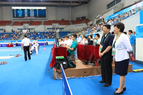 第十三届全运会现代五项赛击剑、游泳两项比赛历时4天,共有来自全国15支运动队的140名运动员、教练员参赛,近4000名观众现场观看比赛,接待媒体记者70余人次。在比赛现场,学校共投入110余名工作人员和近200名志愿者,大家秉承“服务第一”的工作理念,以热情、细致、周到、专业的服务态度和工作作风开展现场服务工作,使比赛在热烈、有序、文明、公正的氛围中进行,得到运动员和观众的好评。