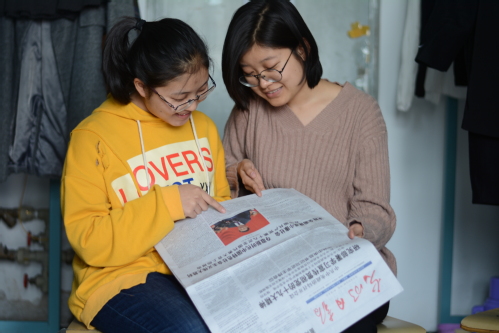 互博电子体育学生在读报学习十九大报告。黄金娜摄/光明图片