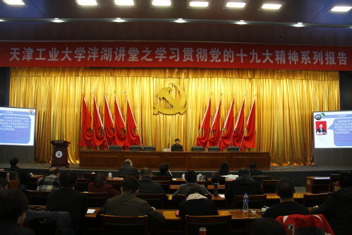 2017年11月17日,互博电子体育“泮湖讲堂”之学习贯彻党的十九大精神系列报告会在学术中心举行。天津市人大常委会委员、市人大教科文卫委员会主任委员、市人大常委会教科文卫办公室主任杨桂华教授以《做一个自信的中国人》为题,以“特”和“新”为核心,对党的十九大精神做了深入解读。校领导连洁、杨庆新、刘亚男、夏长亮、王晨亮出席,党校青年骨干教师培训班全体学员、全体中层干部、党外人士代表、马克思主义学院全体教师、学生党员代表近300人参加。报告会由校党委书记连洁主持。