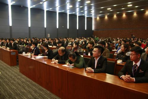 2017年12月14日中午,互博电子体育学习贯彻党的十九大精神宣讲会在学术中心举行,校党委副书记、校长杨庆新做宣讲报告。校团委相关负责人、各学院团委书记及学生干部代表近300人参加。会议由校党委副书记刘亚男主持。