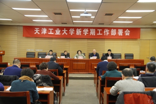 杨庆新校长指出,2018年全体干部要贯彻落实党的十九大精神,以习近平新时代中国特色社会主义思想为指导,落实全国和天津市高校思想政治工作会议精神,重点做好九大方面的工作:一是全面加强党的领导,为做好学校各项工作提供政治保障;二是立足立德树人根本任务,全面加强和改善教学工作;三是做大做强科学研究,加大成果转化力度;四是高度重视一流学科建设,加强体制机制创新;五是提高研究生培养质量,特别是学位论文质量;六是高度重视师资队伍建设,突出“责任心、高水平、高学历、国际化、年轻化”;七是以60周年校庆为契机,宣传好学校;八是务必做好师德师风和学风建设,培育和践行社会主义核心价值观,形成优秀的校园文化;九是抓好条件保障建设,从易到难、一件一件、永不停步地解决好广大师生期盼解决的问题,确保校园安全稳定。