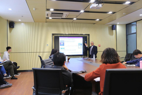 报告会上,Visvanathan教授详细介绍了膜生物反应器(Membrane Bioreactor,MBR)的发展历程。报告分为两个部分内容展开,在第一部分介绍中,Visvanathan教授介绍了他在亚洲理工学院25年期间在MBR研究方面的工作积累、国际合作经验以及期刊论文投稿的建议等。在第二部分介绍中,详细介绍了MBR技术在地表水处理中的应用进展,并提出高级氧化(Advanced Oxidation Process,AOP)与aMBR(attached growth MBR)的集成工艺去高效、经济地脱除地表水中的有机物污染物。会后,Visvanathan教授与在场师生就MBR技术在水处理应用研究以及膜参数调控等方面进行了深入讨论。
