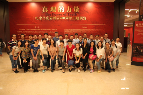 “真理的力量——纪念马克思诞辰200周年主题展览”,分为“伟大革命导师马克思的壮丽人生”、“马克思主义中国化的光辉历程”和“新创作马克思主义题材美术作品”3个部分,展出马克思、恩格斯、列宁手稿、笔记本及亲笔签名的书籍原版等珍贵文献100余件,原版图书900余种,图片150余幅,马克思主义题材美术作品70余幅,雕塑作品6尊,全景展示了马克思的生平、革命实践、理论贡献和精神境界,展现了马克思主义在中国传播运用和丰富发展的光辉历程。展览使学员们受到了一次精神洗礼,重温光辉历史,系统地了解了马克思非凡的一生,更加坚定为梦想不断奋斗的信念。