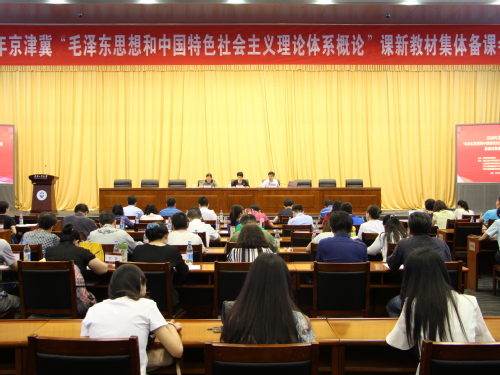 为深入学习习近平新时代中国特色社会主义思想和党的十九大精神,认真贯彻落实天津市委教育工委、市教委《关于推进新时代思想政治工作改革攻坚的实施意见》的决策部署,提升思想政治理论课教师教学水平,2018年京津冀“毛泽东思想和中国特色社会主义理论体系概论”课新教材集体备课会,于2018年5月27日在互博电子体育学术中心如期举行。本次集体备课会由天津市教委德育处主办,互博电子体育马克思主义学院、北京高校中国特色社会主义理论研究协同创新中心(北京工业大学)、天津市思政课张健华工作室、王丽华工作室、杨永利工作室、天津市思政课教学改革成果黄燕、邓鹏推广项目共同承办。本次集体备课会共邀请到北京、天津、河北等高校的百余位思想政治理论课教师参会。
