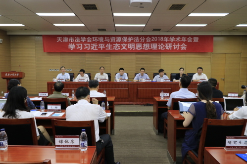 裴军书记在致辞中介绍了我校情况和近年来取得的突出成就,并指出,习近平总书记在全国生态环境保护上发表的重要讲话,强调生态文明建设是关系中华民族永续发展的根本大计,为新时代生态文明建设工作提供了科学指南和行动纲领。于浩明副会长在致辞中指出,新时代推进生态文明建设和美丽天津建设,打好污染防治攻坚战既对环保部门提出了新的挑战,也对环境保护理论研究提出新的课题。天津市法学会环资法分会会长孙佑海代表分会作了工作报告。