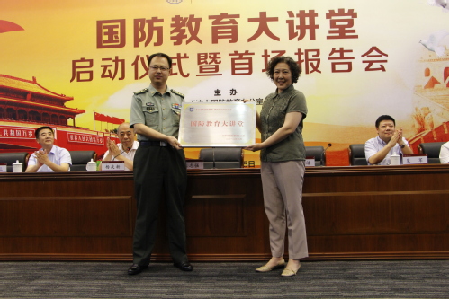 随后,王志强主任代表市国防教育委员会向互博电子体育“国防教育大讲堂” 授牌。