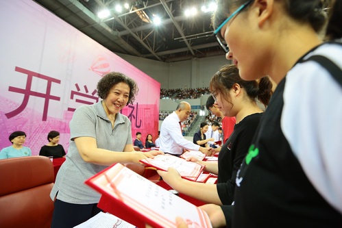 在庄严的国歌声中,开学典礼正式开始。赵宏副校长宣读了《关于颁发2018年“新生奖学金”的决定》,校领导为新生奖学金获得者佩戴校徽并颁发荣誉证书,褒奖他们在求学深造过程中不畏艰苦、努力拼搏、勤奋学习、勇攀高峰的精神。