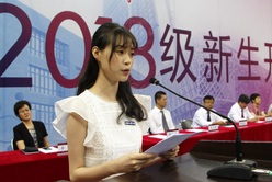 初逢天工,梦想成真。来自经济与管理学院的高姝睿作为本科新生代表发言:“千禧一代的我们与甲子天工的美好相逢,是我们每一名学子无尚的荣耀。”她表示,作为新一代的天工人,要惜时自律,内外兼修,不惘度岁月。“我们准备好了!四年之后,我们定当以优异的成绩,接受学校的检阅!”