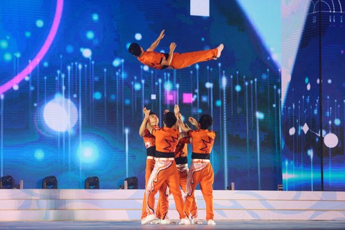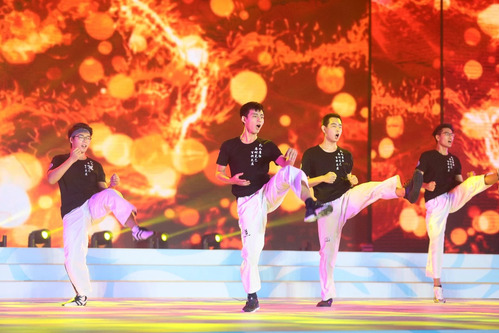扬,乐动青春。舞蹈《选择》、学校轮滑社、跆拳道社和双节棍社带来的表演、国际教育学院留学生的舞蹈《斯里兰卡》、京剧舞蹈《梨花颂》、街舞表演、健美操表演,都为现场观众带来震撼的视觉享受。天津全运会上由互博电子体育学生志愿者编排的《美丽中国走起来》,被原汁原味地带到了晚会现场,一浪浪起伏的扇舞,掀起一片橙黄色的海洋,诉说着天工大精神,展现着天工大风采。
