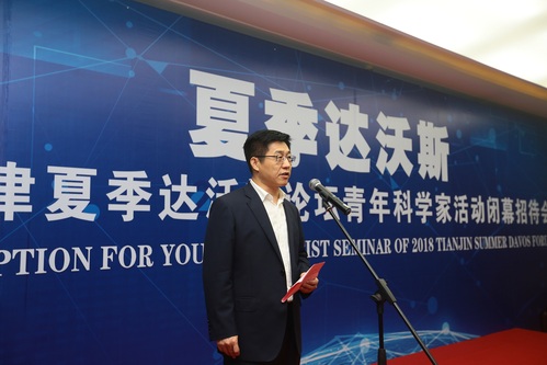 随后进行的闭幕招待会由天津市科委主任戴永康主持。我校校长杨庆新、世界经济论坛青年科学家活动社区负责人戴维·格莱切先生、天津市副市长姚来英分别致辞。