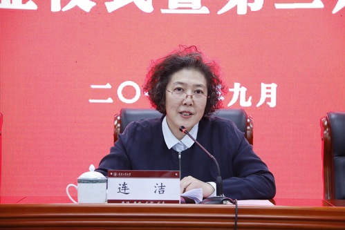 连洁书记代表学校党委向全体“青马工程”学员们表示热烈的祝贺,她高度肯定了“青马工程”一年来的工作和同学们的成长表现,结合习近平总书记9月10日在全国教育大会上的重要讲话精神和对新时代人才培养“六个下功夫”的要求,连书记对学员们提出了殷切希望。一是要在坚定理想信念上下功夫。希望同学们坚定崇高信仰,在实现中国梦的生动实践中实现人生价值,在为人民利益不懈奋斗中书写人生华章。二是要在厚植爱国主义情怀上下功夫。要涵养爱国主义情怀,要热爱我们的党,立志听党话、跟党走。三是要在加强品德修养上下功夫。要树立正确的价值观,扣好人生的第一颗扣子。四是要在增长知识见识上下功夫。要有好的学习态度,贵在勤奋、贵在钻研、贵在有恒。五是要在培养奋斗精神上下功夫。要培养勇于奋斗的进取精神,保持乐观向上的人生态度,用奋斗填写青春的底色,做到刚健有为、自强不息。六是要在增强综合素质上下功夫。要养成良好的生活习惯,提高审美能力和人文素养。
