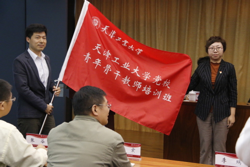 开班仪式首先通过一段视频短片回顾了第1期青年骨干教师培训班学员们的学习经历和收获,在这个过程中大家的理论素养得到了提升,实践能力得到了锻炼,友谊也得到了升华。随后,由第1期青年骨干教师培训班学员代表李瑞同志与第2期青年骨干教师培训班学员代表刘芳同志交接了班旗。