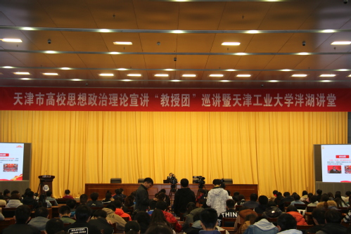 11月15日下午,天津市高校思想政治理论宣讲“教授团”巡讲活动在我校学术中心报告厅举行。我校特邀请党的十九大代表、国家超级计算天津中心教授级高工、应用研发部部长孟祥飞作题为“新时代 新驱动 新跨越”的专题报告,近300名师生参加了此次巡讲报告会。