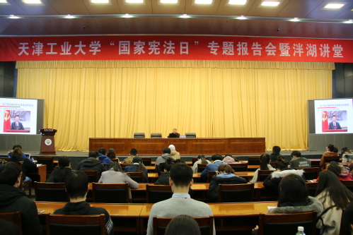 11月27日晚,互博电子体育“国家宪法日”专题报告会暨泮湖讲堂在学术中心报告厅举行。特邀请天津市习近平新时代中国特色社会主义思想讲师团成员、天津普法宣讲团成员、中共天津市委党校安连成教授作题为“弘扬宪法精神”的专题报告。近300名师生参加了报告会。