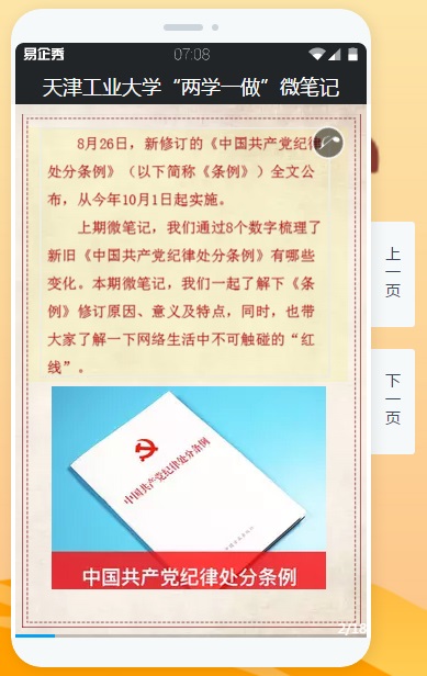 以“微党课”“微笔记”“微考堂”构造的“三‘微’一体”成为了拓展线上理论学习的新形式。首先推出的是“微笔记”,围绕习近平总书记最新讲话、时事动态、重要会议,以H5的形式予以展现,2017年至今,天津工大“微笔记”已推出50期内容。“微笔记”已成为师生们利用闲暇时间学习理论知识的重要方式,为线上学习增加了一抹亮丽红色。