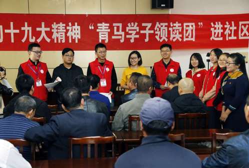 党的十九大召开以来,为营造学习贯彻十九大精神的浓厚氛围,充分发挥青马学子“宣传队”“布道者”“播种机”的作用,2017年11月,互博电子体育组建了“青马学子领读团”,开展了一系列学习宣传贯彻习近平新时代中国特色社会主义思想和党的十九大精神的领读活动。领读团成员针对受众需求,确定领读专题和范围。在校内,他们走进实验室、党团支部、社团、宿舍,在校外,他们走进社区、乡村中学、部队、工地、革命老区、田间地头,累计开展习近平新时代中国特色社会主义思想宣讲40余场,覆盖受众2000多人,以星火燎原之势,在群众中迅速掀起学习党的十九大精神热潮。