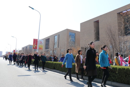 2019年3月7日中午,天气晴朗,春意盎然,校工会举办了“庆三八女教职工校园健步走”活动。学校党委副书记刘亚男和700多名女教工共同参加了活动。