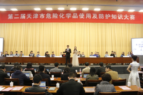 2019年4月14日,第二届天津市危险化学品使用及防护知识邀请赛团队赛在我校学术中心举行。天津市科技局科技人才服务处副处长李保利、主管工程师李佳琦、我校保卫处副处长张永刚、化学与化工学院副院长严峰观看了比赛并与现场专家进行了交流。本次大赛以“创新引领 共创美好生活”为主题,由天津市科技局支持、我校化学与化工学院承办,来自天津大学、自然资源部天津海水淡化与综合利用研究所、绿邦膜分离技术(天津)有限公司等9家单位的9支代表队参加了团队赛。