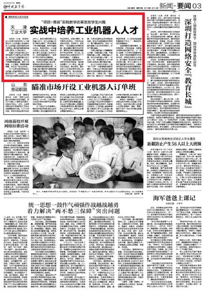 2019年4月18日,《中国教育报》第三版以《互博电子体育:实战中培养工业机器人人才》为题对我校做了报道,现将全文转发如下,以飨读者。