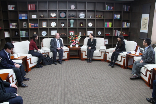 会见结束后,彼得森院长一行在学校科研中心、化学与化工学院、膜国家重点实验室进行座谈。在听取了膜国家重点实验室何本桥副主任、化工学院梅东海副院长分别介绍的各自情况、研究特色及突出成果后,彼得森院长对华盛顿州立大学化学工程与生物工程学院进行了详细介绍。双方就未来在学生尤其是研究生培养、教师学术交流等方面的合作与交流进行细致商谈并达成共识。座谈会后,外方客人参观了化学与化工学院实验室和膜国家重点实验室。