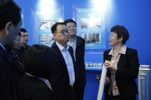 李绍洪一行首先参观了公司展厅及反渗透膜制造车间,细致询问了智能卷膜车间建设、反渗透膜元件生产和销售,特别是新产品开发、技术创新及应用情况。公司负责人王薇博士就反渗透膜材料的重要地位、公司成长历程、公司发展前景作了汇报。