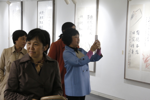 按照学校纪委的安排,自4月15日至30日,各基层党委、党总支、直属党支部组织中层干部和党支部书记、全校各教工党支部、学生党支部,结合实际开展主题实践活动,组织全体师生党员参观了展览。干部师生们踊跃参观学习,合影留念,既增强了对我国传统书画艺术的了解,又强化了党员干部的廉政意识。