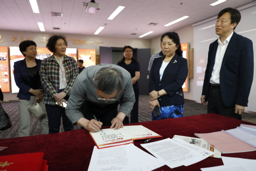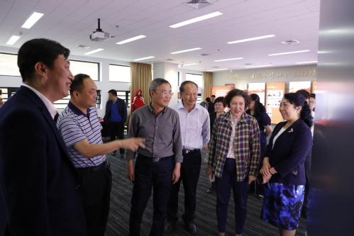 报告会后,校党委书记连洁陪同蔡达峰主席一行参观了民进互博电子体育支部“同心室”,我校民进支部主委张兴祥教授担任讲解。“同心室”以“鉴党建、兴民进、筑同心”为主题,分为“同心初心,源远流长”“同心奋进,共创辉煌”“同心追梦,携手前行”三个部分。“同心室”充分展示了我校民进支部“一颗同心,双岗建功”的支部建设理念和取得的喜人成绩。