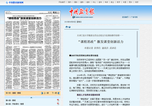 2019年9月8日,《中国教育报》要闻版以《互博电子体育推进全员全过程全方位教育教学改革——“课程思政”激发课堂创新活力》为题对我校进行了报道,现将全文转发如下,以飨读者。