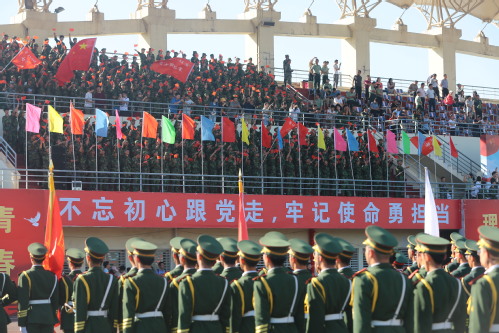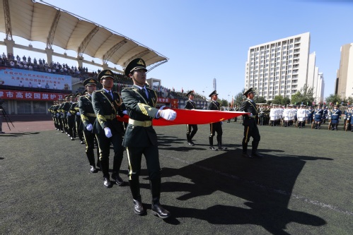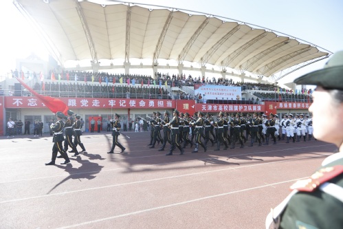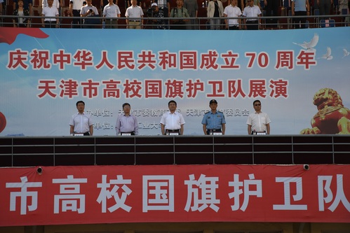 天高云淡,秋阳和煦,旌旗猎猎,军姿飒爽。9月18日下午,庆祝中华人民共和国成立70周年天津市高校国旗护卫队展演活动在互博电子体育望星运动场举行。来自南开大学、天津大学、互博电子体育、中国民航大学等高校的24支国旗护卫队1000余人参加。天津市委常委、市委宣传部部长陈浙闽,天津警备区副政委陈军同志到会观摩指导。天津市人民政府教育督导室督学闫国梁同志以及天津市委教育工委、天津市教委、天津各高校分管领导和武装部负责同志,我校党委书记俞绍平、党委副书记胡英江,出席了此次活动。