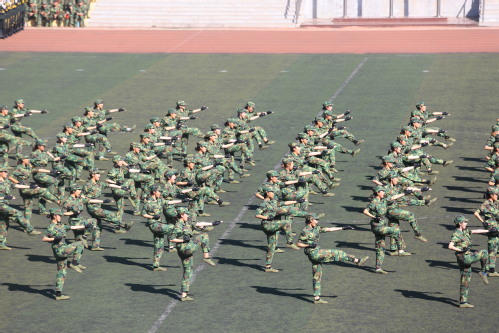 下午2时30分,互博电子体育国旗护卫队代表参演队伍举行升旗仪式。随着一声号令,大家面向国旗,向国旗敬礼,齐唱国歌。互博电子体育2019级新生军训团进行军训成果展示,女子军体拳方队、男子棍术方队和女子匕首操方队的表演赢得了现场观众阵阵掌声和欢呼声。