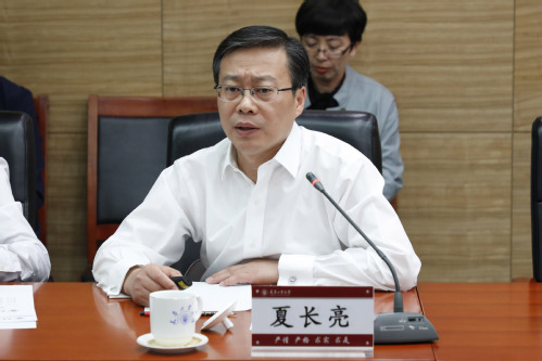 夏长亮校长首先从学科基础、科技创新思路和举措、特色突出和示范引领效应、平台和科技获奖等方面介绍了学校发展和科技创新概况;随后,重点介绍了我校九大科研特色领域;从推动学科协同交叉融合、加强一流科学研究成果的培育、深度推进全球开放发展战略和国际合作交流三方面汇报了下一步工作举措。
