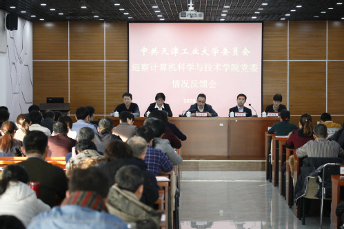 2020年1月3日下午,我校党委第二轮巡察情况反馈会在计算机科学与技术学院召开。校党委书记、巡察工作领导小组组长俞绍平出席并讲话,校党委副书记、巡察工作领导小组副组长陈泮成主持会议,天津师范大学党委巡察组组长李梦丽反馈巡察情况。天津师范大学党委巡察组全体同志,计算机科学与技术学院领导班子成员、系部室主任、全体党员教师、正高职称教师、学生党员代表以及学校各基层党委、党总支、直属党支部书记和相关职能部门主要负责人参加会议。