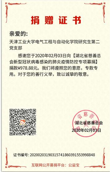 与此同时,各学生党支部积极行动起来,正值寒假,学生党员分布在全国各地,但是时空和距离阻隔不了广大学生党员响应号召、为疫情贡献力量的决心和爱心。各党支部纷纷通过网络、视频召开会议,精准传达学校防控工作要求,开展别开生面的党日活动,为防控疫情贡献力量。组织开展学业加油站,带领同学们“停课不停学”。电气工程与自动化学院研究生第三党支部、研究生第二党支部、自动化第一党支部自发开展援助武汉的捐款行动,号召支部党员同志积极行动起来,为坚决打赢疫情防控阻击战贡献自己的力量。截至2月4日,共计向武汉市慈善总会捐款金额共计4316.88元。艺术学院学生党支部撰写致支部全体共产党员一封信,按照要求每天做好相关信息统计和上报工作。
