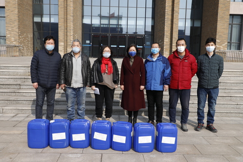 2月19日,我校1997届纺织品设计专业校友、美冠科技(天津)股份有限公司董事长郭素芳,向学校捐赠2吨84消毒液。郭素芳校友得知母校防疫物资紧缺后,第一时间通过生命科学学院院长肖志涛联系到学校新冠肺炎疫情防控工作指挥部,提出捐赠意愿,尽快解决学校防疫物资紧张问题。由于员工尚未复工,她和爱人亲自搬运公司的2吨消毒液运送至学校。郭素芳校友表示:自己一直想为母校做些事情,正值防疫关键时期,希望自己的行动能对母校有所帮助。多方校友的关心和支持,助推学校战胜疫情,让母校感到无比温暖。学校副校长陈莉,以及党委(校长)办公室、校友工作办公室、后勤管理处负责人接受捐赠,并向郭素芳校友表示由衷感谢。