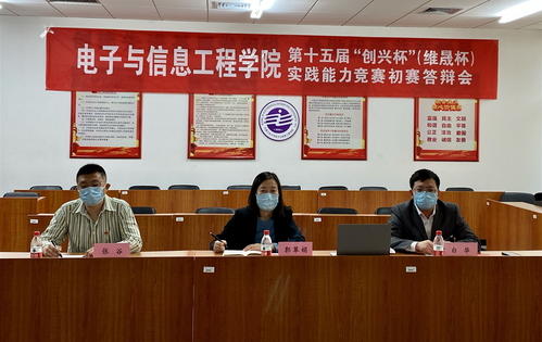 为进一步激励学生科研创新和动手实践能力,以赛促学加强学风建设,提高人才培养质量,电子与信息工程学院于2020年5月16日上午举行第十五届“创兴杯”(维晟杯)实践能力竞赛初赛线上答辩会。校党委副书记胡英江通过线上方式为竞赛致辞,党委学生工作部、教务处、校团委、电子与信息工程学院相关负责人和教师以及相关企业负责人参加线上答辩会。