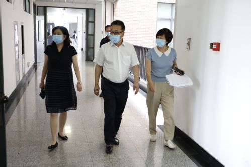 校党委书记俞绍平来到公共教学楼对上学期线下(延期)考试每个考场的考场秩序、考风考纪、监考人员工作情况等逐一进行检查。他对考试运行情况表示肯定,要求各项保障措施到位,确保考试顺利完成。