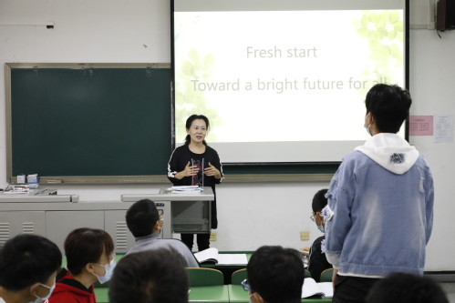 “未来的无限可能来自于你‘尽善尽美、成为最好’的强烈愿望。”针对从高中生到大学生身份转变带来的迷惘,结合课本第一单元的主题,老师们启发学生由英语26个字母找出了各自所对应的词汇,解答了同学们学习生活会面临的困惑,给出了中肯的建议,并激励他们积极向上,刻苦学习。老师们设计了天工三问:你眼中的理想天工、你期待的天工生活、你的天工时间表?通过提问、演讲、讨论等互动形式,由外及内、由知而行,带领学生明确自己的英语学习目标和实现方式。通过介绍《大学英语》课程的体系脉络,明确英语能力的工具属性:在高中学习的基础上进一步提高英语听、说、读、写、译的能力,再结合所学专业和职业规划,学习有关学术英语或职业英语,获得在学术或职业领域学习、交流的能力。