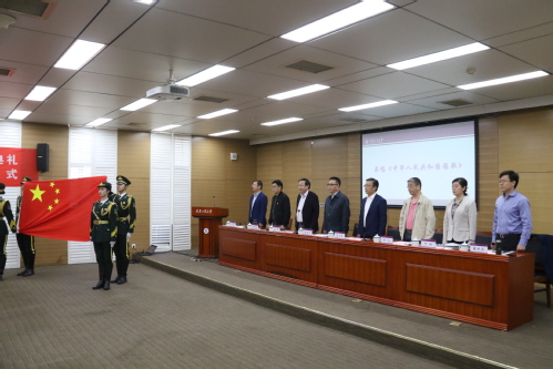 典礼在雄壮的国歌声中拉开序幕。全体新入职教师面向国旗、校旗进行集体宣誓。随后,全体新入职教师庄重签订师德承诺书、课堂讲授承诺书,承诺自觉遵守《高等学校教师职业道德规范》,切实做到爱国守法、敬业爱生、教书育人、严谨治学、服务社会、为人师表。
