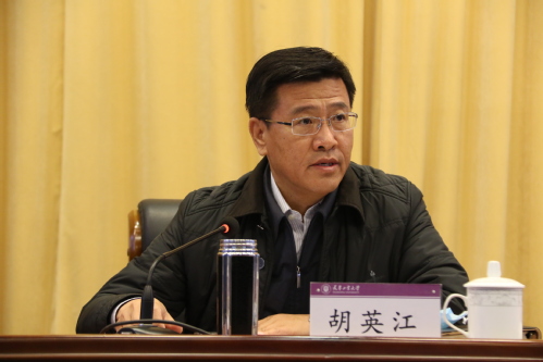 校党委副书记胡英江代表学校对一年以来各项学生工作给予了充分肯定。他指出,疫情发生以来,全体学工干部在学校党委的领导下,同向聚力、攻坚克难,取得了“双战双赢”的重大阶段性胜利。他强调,在未来我校的学生思想政治教育与管理工作中要深刻理解做好学生思想政治教育与管理工作的重要性,时刻不忘立德树人初心,牢记为党育人、为国育才使命;要把握新时代高校育人的新特征、新要求,不断增强做好学生思想政治教育与管理工作的自觉性、主动性、能动性;要守正创新、砥砺前行,聚焦“六个着力”,不断体现新担当、展现新作为、实现新突破。最后,他勉励与会同志,在这样一个特定的历史阶段中,要时刻牢记身上肩负的使命,更要保持清醒的头脑,胸怀梦想、敢于追梦,厚积薄发、持之以恒,不负这个伟大的时代,共同谱写教育强国建设新篇章。