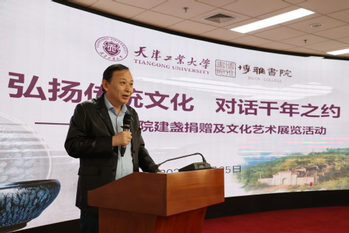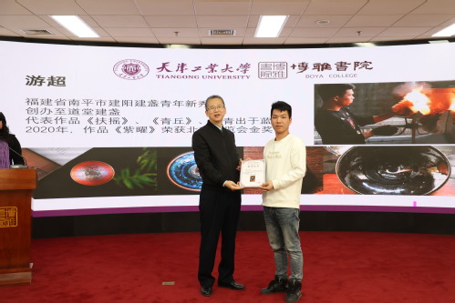 副校长姜勇在建盏捐赠仪式上致辞,向远道而来的建盏艺术家表示欢迎,介绍了我校近几年的高速发展及成就、博雅书院的建立及使命,同时代表学校对几位艺术家的匠心捐赠,对万长铭校友为学校发展的积极工作,表示由衷的感谢。博雅书院院长肖强为建盏捐赠艺术家颁发捐赠证书。
