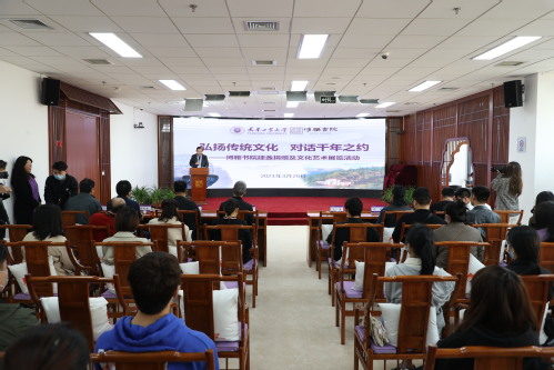 2021年3月25日上午,“弘扬传统文化 对话千年之约”建盏捐赠及艺术展览在我校博雅书院正式拉开帷幕。展览邀请老中青三代建窑建盏代表匠人,展出建盏艺术家杨敏、高邵雄、游超、周运隆、余奇骏、万长铭等人的作品共80余件。此次活动由我校校友万长铭积极沟通促成,天工师生150余人参观了展览。