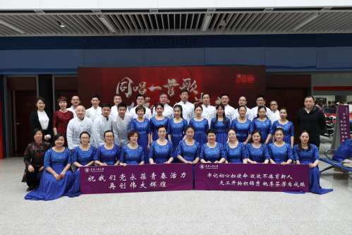 “万水千山不忘来时路,鲜血浇灌出花开的国度,生死相依只为了那一句承诺,报答你是我唯一的倾诉……不忘初心,继续前进,万水千山,最美中国道路。”35名合唱团成员以一首《不忘初心》,带领我们重温革命先烈用生命和热血铸就的雄壮历史,展望未来中国的美好前景,阔步迈向新征程。录制现场,大家难以掩饰心潮澎湃的激动心情,他们表示:“此次展演正逢中国共产党成立100周年,我们要用歌声激发全校师生的向心力和凝聚力,增强全校师生不忘初心、牢记使命争创具有世界一流学科的高水平大学的自信心和自豪感。”在现场,他们以嘹亮的口号“牢记初心担使命,孜孜不倦育新人;天工开物织锦秀,桃李芬芳自成蹊”喊出了天工人的责任与担当。