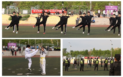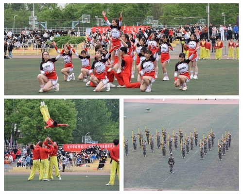 在开幕式表演中,现场进行了健身操、健美操、战术表演。表演者们用动作诠释着青春的活力,用热情编织着青春的风采,高水平运动队表演的竞技健美操引起现场掌声不断,掀起了此次运动会的第一波高潮。