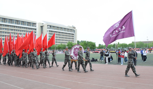 伴随着《运动员进行曲》的激昂旋律,32个方队喊着响亮的口号,迈着坚定的步伐依次进入运动场、走过主席台,充分展现了我校师生良好的精神风貌。
