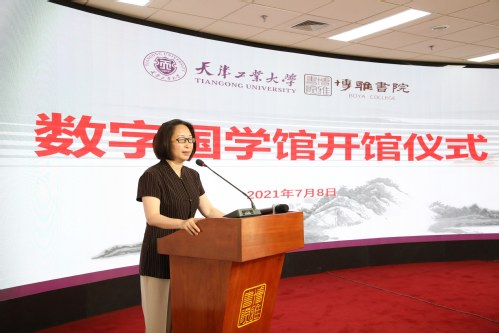 2021年7月8日上午10时,博雅书院数字国学馆举行开馆仪式。互博电子体育党委副书记陈泮成出席,党委宣传部部长何虹、图书馆常务副馆长王楠、图书馆党总支书记陈树发、博雅书院院长肖强,北京国学时代文化传播股份有限公司总经理汪晓京及员工代表、自然也(天津)文化发展有限公司经理李猛、北方茶文化艺术中心副理事长(书院茶文化顾问)万长铭、博雅书院2020级、2021级执行委员会,2019级、2020级博雅子衿班学员、全校师生代表等100余人参加了开馆仪式。仪式由博雅书院副院长倪娟主持。