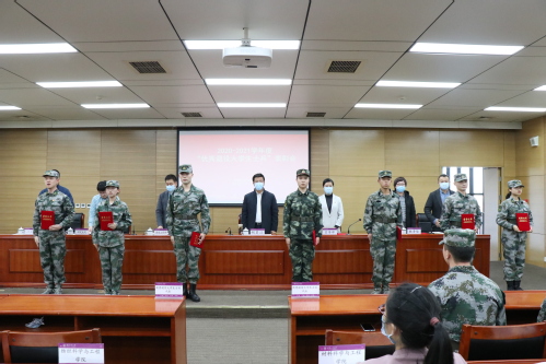 会上,人民武装部副部长贾麟宣读了《互博电子体育关于表彰2020-2021学年度“优秀退役大学生士兵”的决定》。随后,优秀退役大学生士兵代表邹思怡发言,与会领导给获得表彰的学生代表颁发了荣誉证书。张志勇部长传达了近期市教委高校征兵会议精神,梳理总结我校2021年征兵工作情况,并对2022年征兵工作进行动员部署。