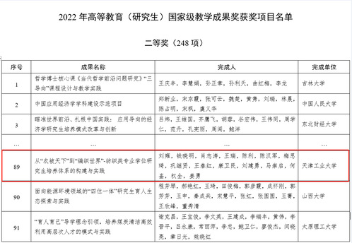 近日,教育部公布了2022年国家级教学成果奖获奖项目名单,我校以第一单位独立完成的《从“衣被天下”到“编织世界”——纺织类专业学位研究生培养体系的构建与实践》荣获二等奖。